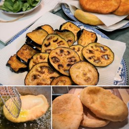 Except, not knowing all of the secret recipe that contains anise and saffron, we decided to make our own version with toppings of basil pesto and crispy prosciutto, bufala di mozzarella, melanzane, tomato and basilico leaves from the garden. The fritte were also cooked in a wok and finished in the oven, which worked well, but isn’t quite traditional! Yet they were delicious and I loved thinking about their connection with Abruzzo.