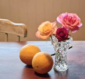 On the kitchen table today… roses and lemons from a friend’s garden. (With glorious fresh, crisp and sweet musky scents!) The vase came from Nanna Francesca’s ‘good cabinet’ and was a bonbonniere from a 1970s or 80s Italian wedding. (Some will remember those!) It’s fairly solid – perfect for carrying home after at least nine hours of wedding celebrating! Have a lovely day. 😊 Zoe xx