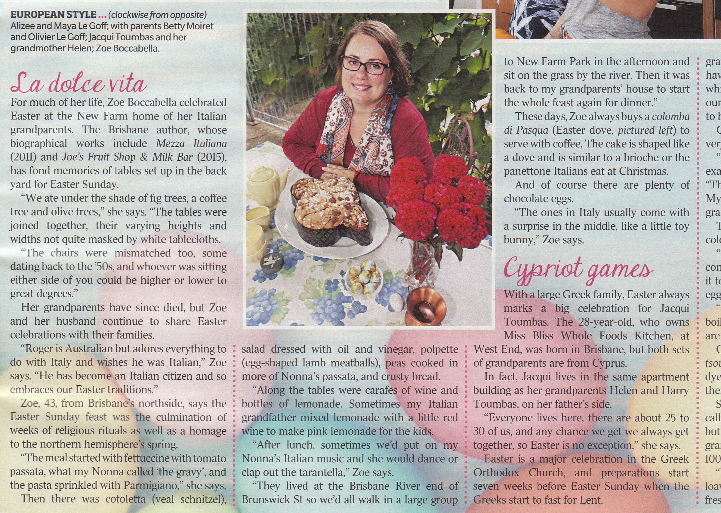 Also, since I mentioned in my last post that Nanna Francesca would’ve been especially happy to see, The Proxy Bride in the Australian Women’s Weekly, I thought I should mention the same might’ve been for Nonno Anni regarding a recent article about my books appearing in the Italian Australian newspapers, Il Globo and La Fiamma (full article in Italian online). I have lovely memories of him at the kitchen table often reading one of these newspapers with a morning coffee (International Roast boiled on the stove in the enamel pot, of course!)